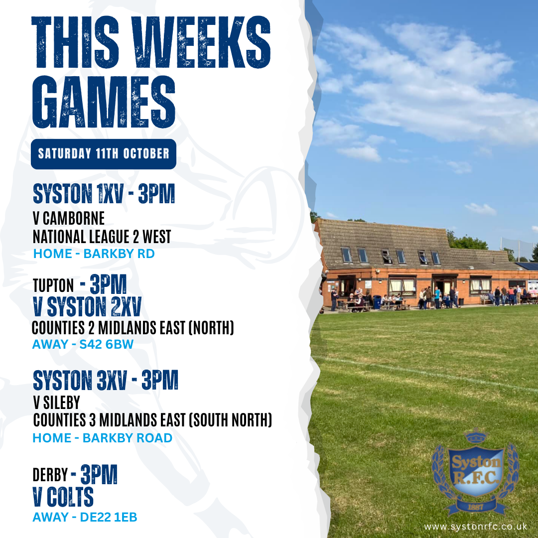 THI WEEK'S GAMES! Saturday 11th Oct 2025.