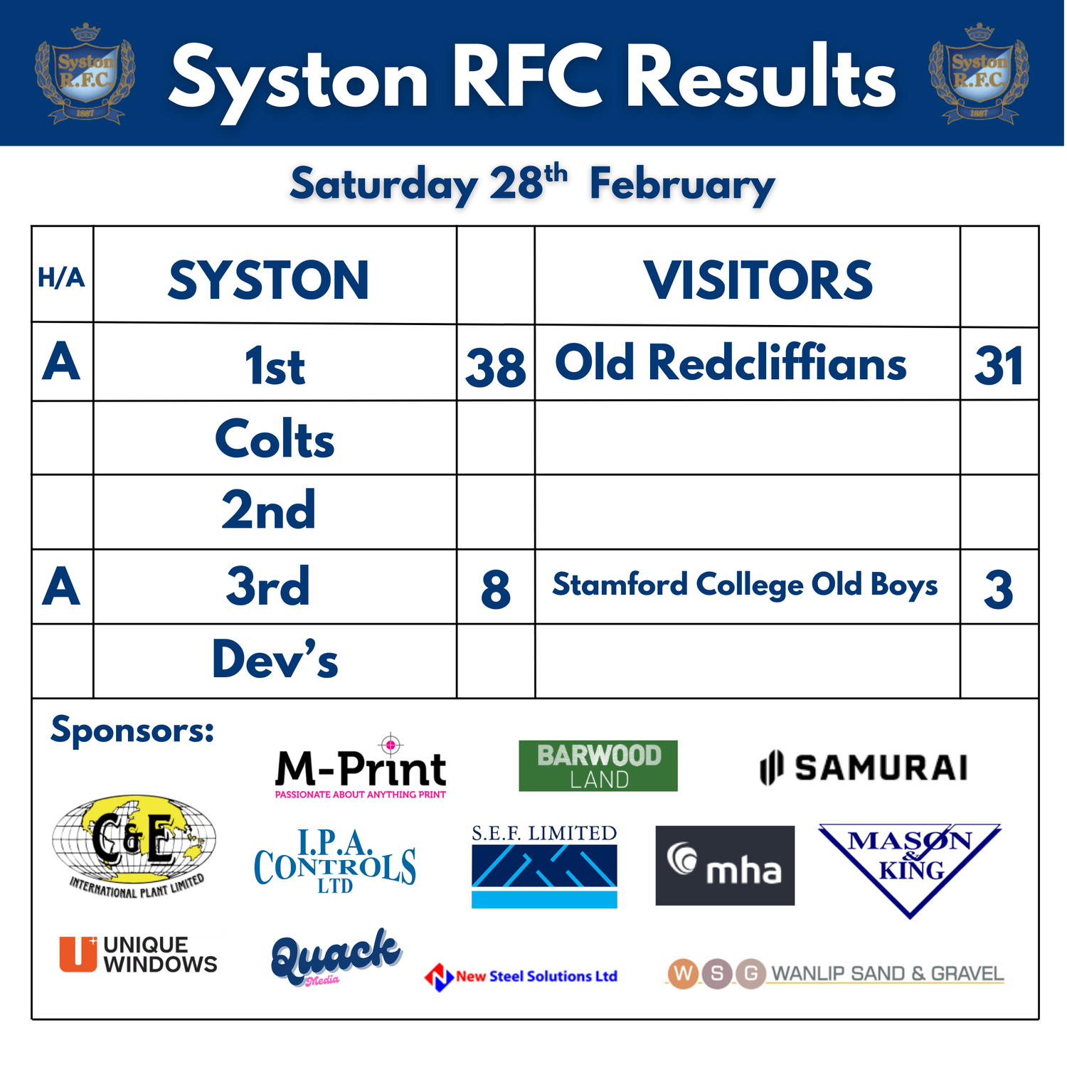 If you would like more information on becoming an official sponsor of Syston Rugby Football Club please contact us!